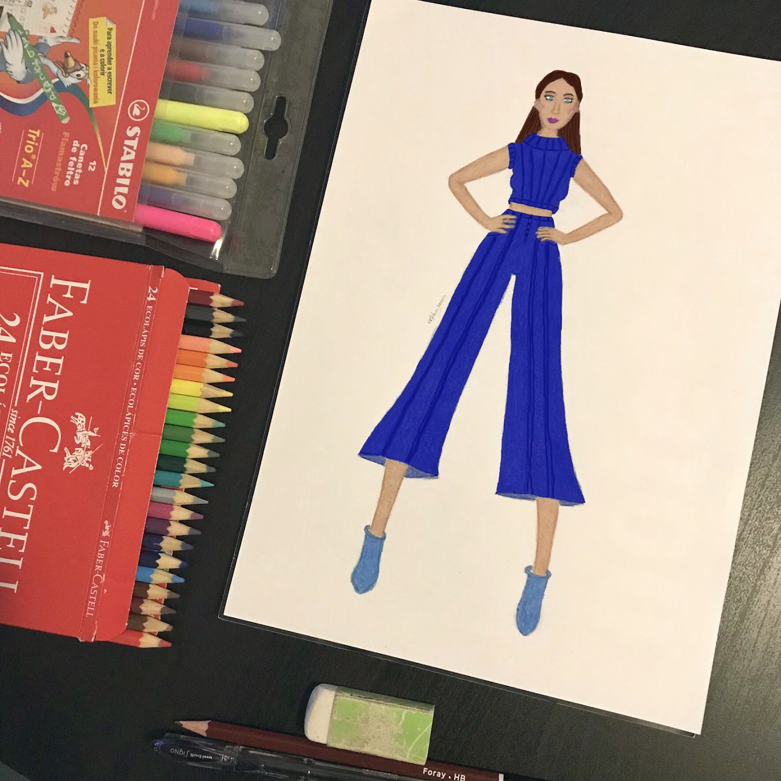 Só vou começar as aulas de Corte, Costura e Modelagem em Janeiro, logo no início do mês, mas já ando super ansioso e nervoso, a par disso também ando bastante inspirado, andava há uns bons dias com este outfit na cabeça para desenhar e finalmente larguei a preguiça e coloquei mãos à obra.